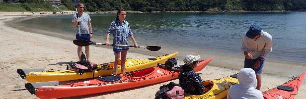 車もしくは徒歩でツアー場所へ移動し受付など準備が出来たらツアー開始です。まずはカヤックの使い方や漕ぎ方を説明します。ライフジャケットやもし海に落ちた場合も事前に説明を行いますので初めての方や泳ぎに自信がない方でも安心してご参加ください。さぁ煌く海が目の前に広がります!
