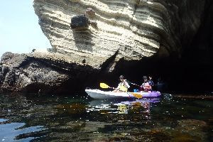ご飯を食べたら午後のツアーへ出発です。午前中に練習したパドリングを活かして伊豆海を満喫しましょう。午前中の練習は全て午後からのツーリングのためにあるのです!真っ青な海、海面下に泳ぐ小魚たち。そして大きな洞窟へも挑戦してみましょう!湾の外には息を飲むような壮大な景色が広がっています!