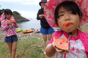 ツアーもいよいよ終了です。漕ぎ出した浜へ帰ってこられれば無事終了。くたくたになるまで楽しんでいただけましたか?お子さんを思いっきり遊ばすにはお父さんとお母さんも本気で遊ばなければついていけません。我々も夏の思い出づくりのお手伝いできたら幸せです。ツアー中ガイドが撮っていた写真はWebアルバムにて無料ダウンロードできます。年賀状の素材はこれで決まりです。