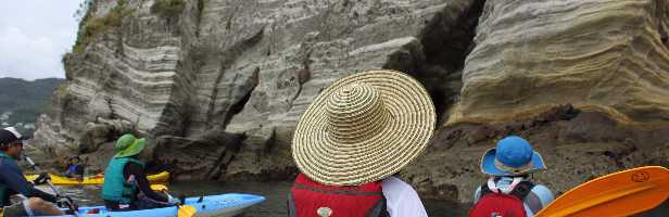 伊豆半島ジオパーク推進協議会認定ジオガイドがカヤックでジオサイトをご案内いたします。
