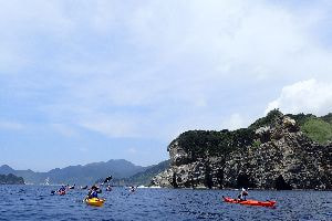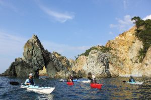 黒潮の影響をしっかりと受ける石廊崎や海面から一気に200m以上の絶壁が駆け上がる波勝崎赤壁など圧倒される景色が広がり日本有数のシーカヤックフィールドとして日本人ならいつかは漕いでいただきたい我々の自慢の海です。