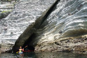 注)ジオカヤックツアーは洞窟めぐりのツアーではありません。(洞窟に行くことはありますが)伊豆の海岸線の成り立ちをジオガイドが地質的説明をしながらツーリングをしていくツアーになります。ツアーコースも普段我々がツーリングしている海岸線になります。