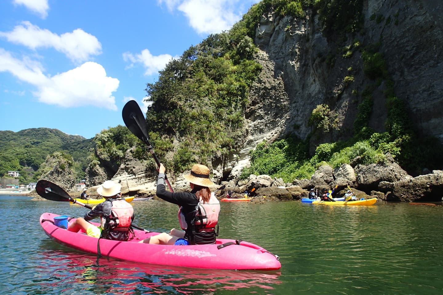 半日体験ツアーは南伊豆子浦海水浴場のみでの開催となります。外海より守られた湾内でのツアーになりますが洞窟やトンネルなども楽しめます(※天候や潮汐によって入れない場合もあります)湾の外やゆっくり1日楽しみたい方はFirstSeakayakツアーをお勧めいたします。